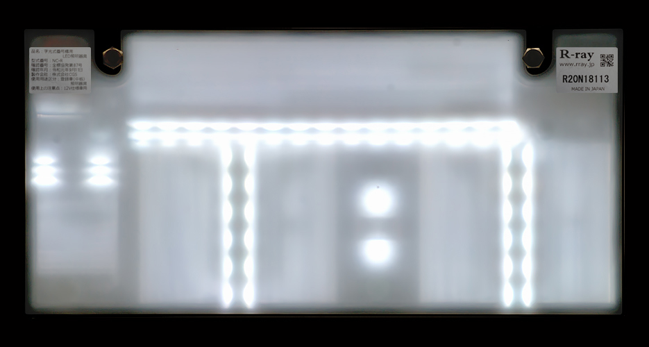 字光式ナンバープレートの各所における明るさのバラツキを輝度ムラといいます。